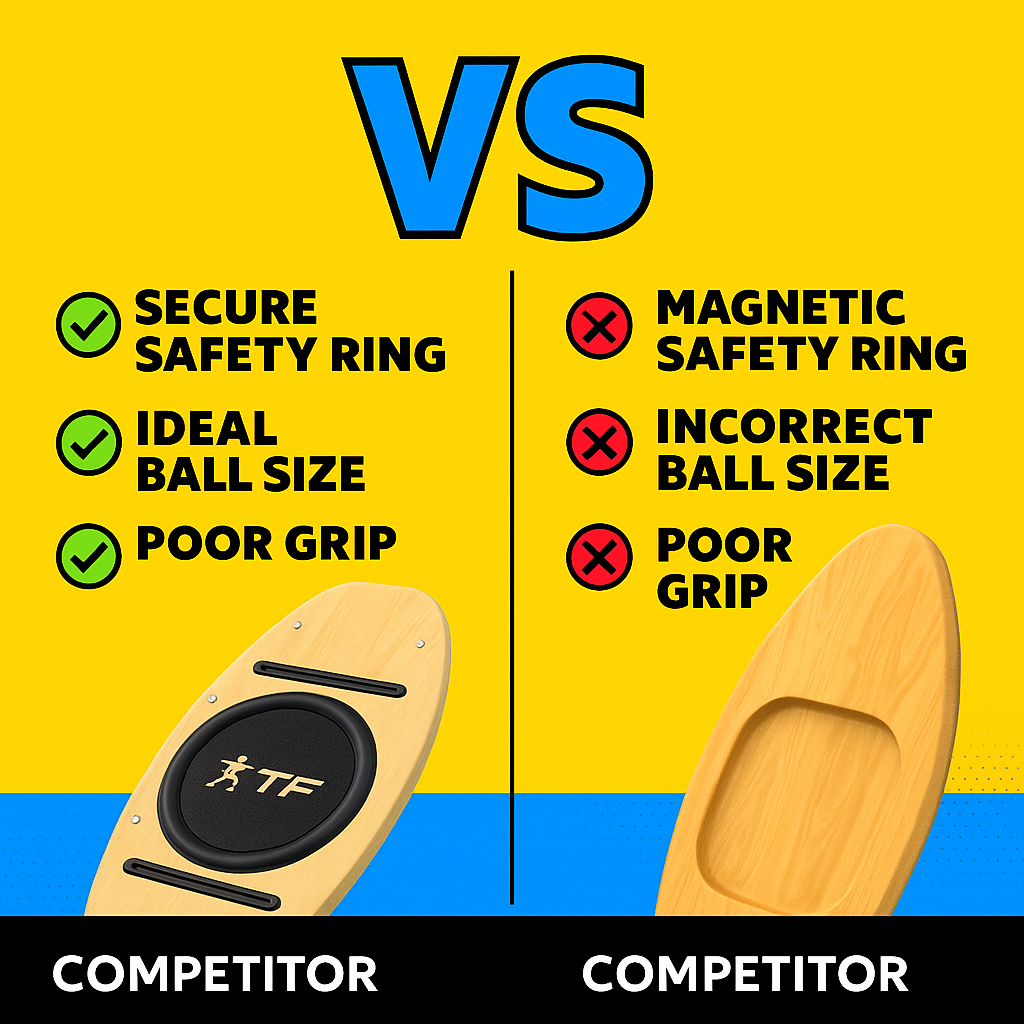 Most balance boards rely on small or inflatable balls that feel unstable, collapse, or wear out, leading to choppy, inconsistent rides. TF Balls solve this with a solid, durable rubber design that delivers smooth, surf-like 360° flow, consistent performance, and long-lasting reliability—making them the only ball you’ll ever need